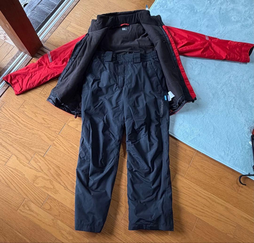 ご覧いただきありがとうございます。即購入OKです!表がナイロンの防水性と裏が中綿を兼ね備えたSHIMANOの上下ウェアセット。サイズXL- ブランド: SHIMANO- カラー: ブラック- タイプ: 中綿 撥水加工ナイロン- セット内容: ジャケットとパンツ- デザイン: キルティングパターン軽くて暖かいです!1回着用のみの極美品ですのでこれからの季節に是非!!迅速に発送させていただきます!